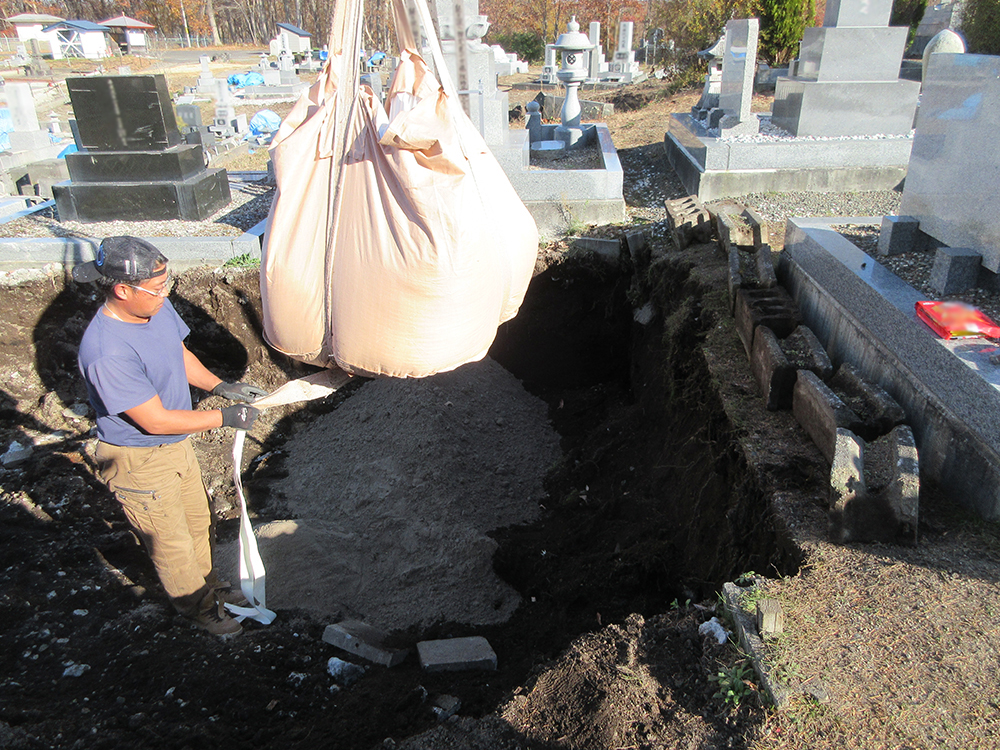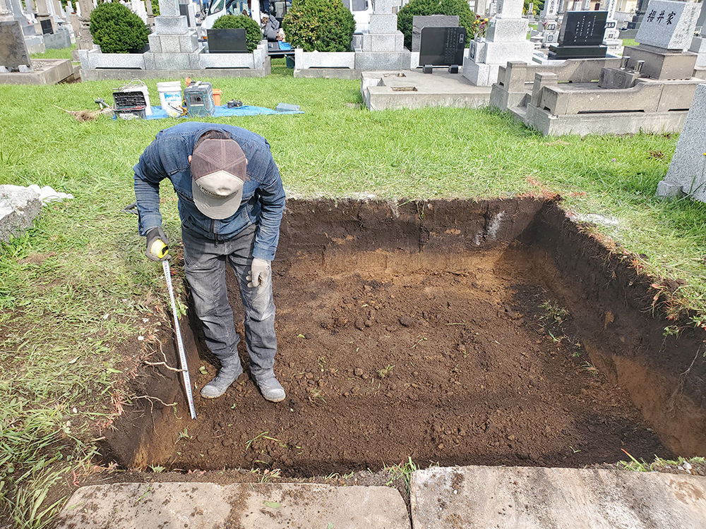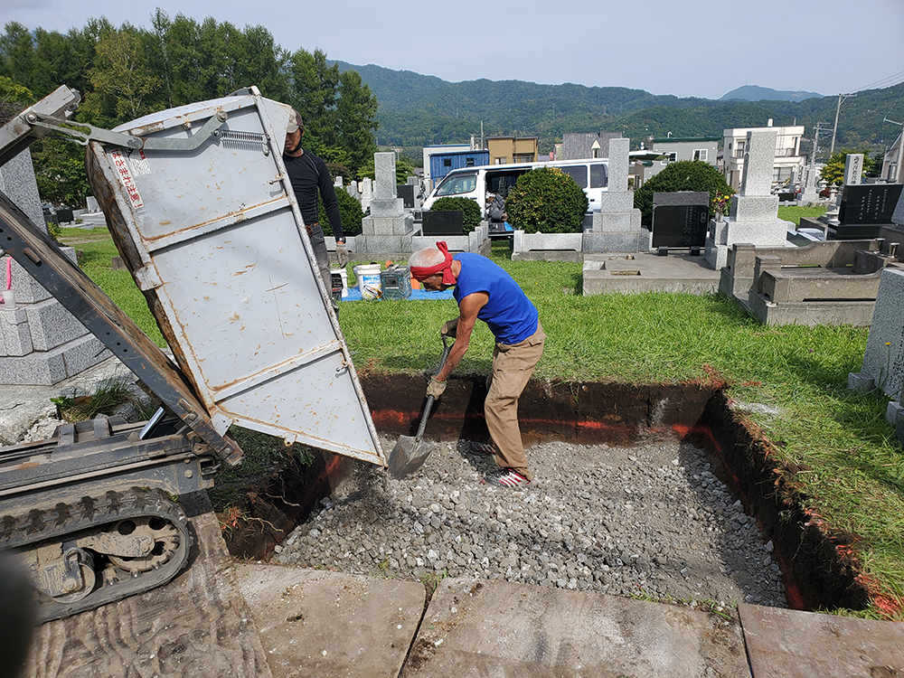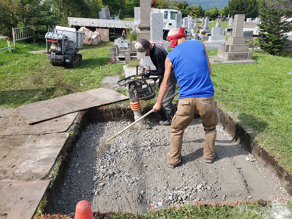 墓石の基礎工事から墓石設置工事。